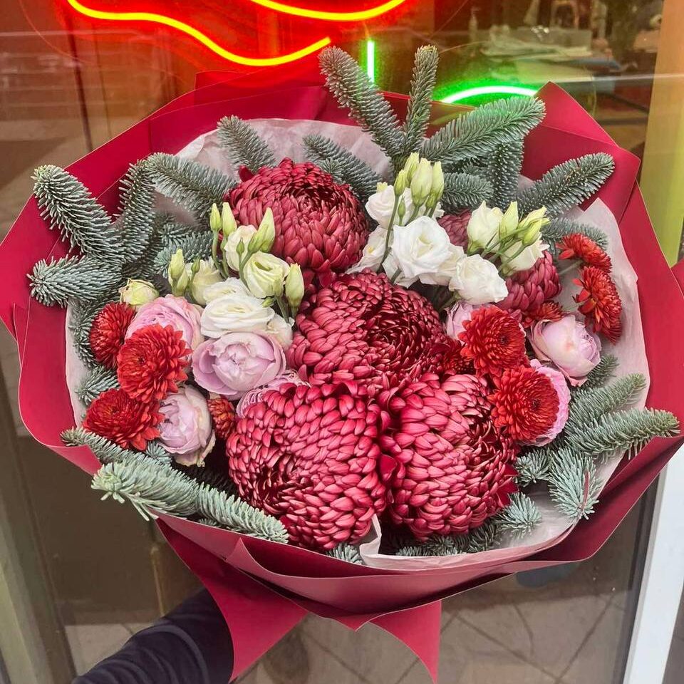 Відкрийте для себе магію зимових барв з Букет Зимовий натяк — унікальною композицією, що поєднує в собі глибину бордових хризантем, ніжність рожевих квітів, чистоту білої еустоми та загадковість нобелісу. Цей букет — ідеальний вибір для тих, хто шукає незвичайний, стильний та елегантний подарунок, який зігріє серце навіть у найхолодніші дні. Кожна квітка підібрана так, щоб створити атмосферу зимової казки та романтики, роблячи цей букет неповторним доповненням до будь-якої події. Ви можете придбати букет у магазині “Дарунок” за адресою м. Чернівці, вул. Рівненська, 5а або замовити онлайн з доставкою додому по Чернівцях та області.