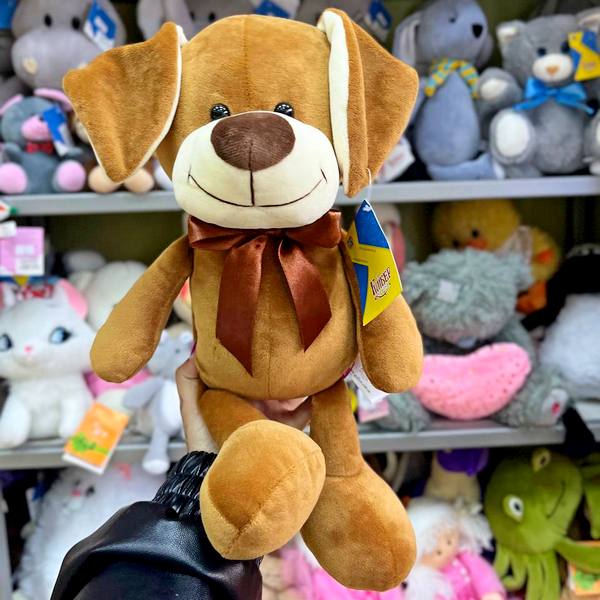 • Чарівний дизайн: Коричневий колір та бантик на шиї роблять Песика Дена особливо милим і стильним.